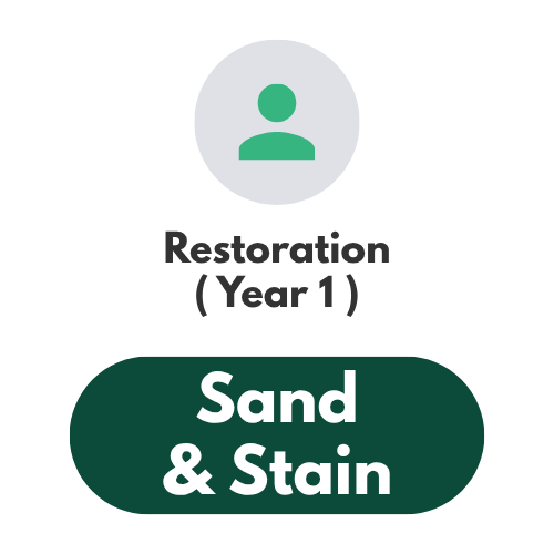 Step 1: restorative hard sanding to remove all previous coatings and remove any graying / faded wood back to original wood colour